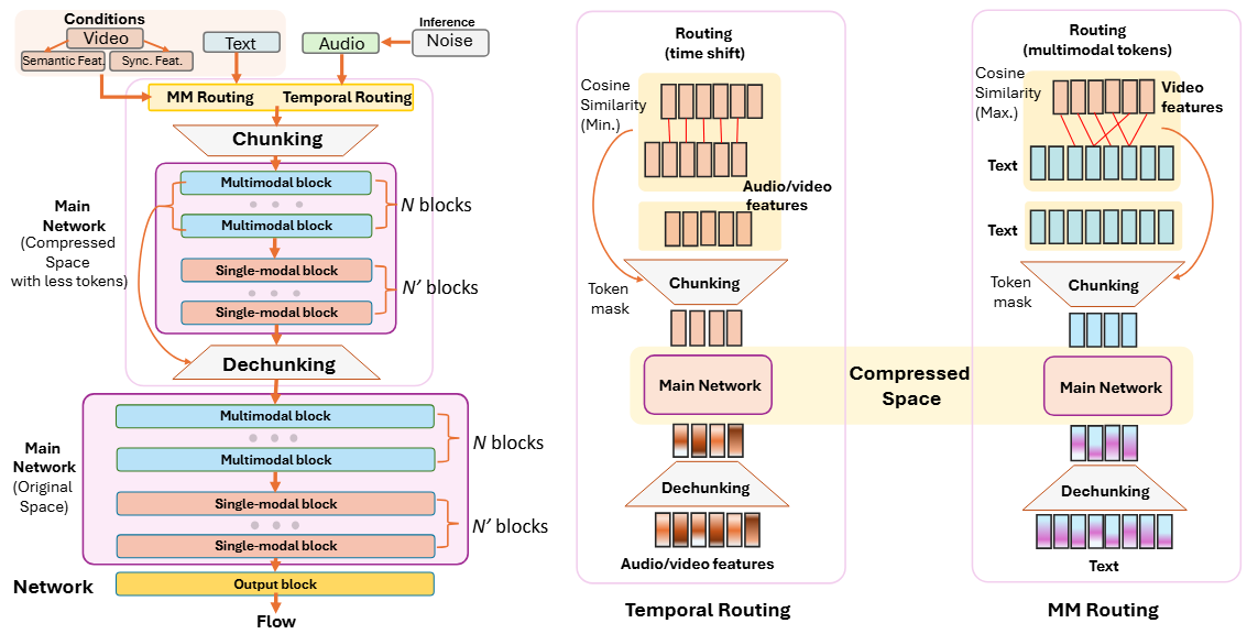 Abstract. Scaling multimodal alignment between video and audio is challenging, particularly due to limited data and the mismatch between text descriptions and frame-level video information. In this work, we tackle the scaling challenge in multimodal-to-audio generation, examining whether models trained on short instances can generalize to longer ones during testing. To tackle this challenge, we present multimodal hierarchical networks so-called MMHNet, an enhanced extension of state-of-the-art video-to-audio models. Our approach integrates a hierarchical method and non-causal Mamba to support long-form audio generation. Our proposed method significantly improves long audio generation up to more than 5 minutes. We also prove that training short and testing long is possible in the video-to-audio generation tasks without training on the longer durations. We show in our experiments that our proposed method could achieve remarkable results on long-video to audio benchmarks, beating prior works in video-to-audio tasks. Moreover, we showcase our model capability in generating more than 5 minutes, while prior video-to-audio methods fall short in generating with long durations.